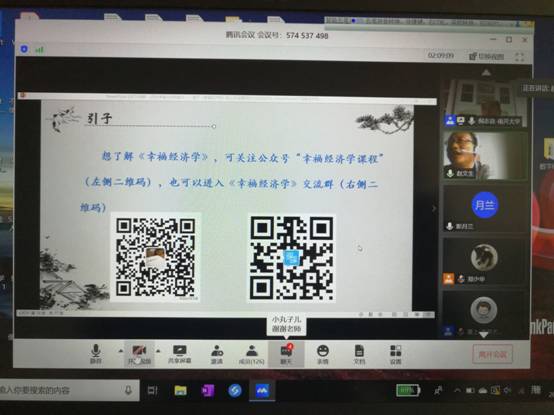倪志良教授首先介绍了《幸福经济学》课程的形成过程,提出“以人为本”经济学核心思想。究其根本,人生最宝贵的资源是“时间”“精力”等生命资源,如何将有限的“时间”和“精力”资源均衡配置于收入、名望、健康和人际(亲情、友情)等诸多方面,使个体几十年的生命体验达到最优。人有外求和内求两个方面,“外求”关乎资源最优配置;“内求”关乎“心”,关乎“幸福”。然后,倪志良教授从认知力、判断力及其在公共治理中的应用、灾难对个人“三力”能力的检验、让教育铸就学生的“三力”等几个方面进行详细阐述,内容非常丰富,信息十分广泛。引用古今中外名人名言和案例论证认知的“至简”“至上”和“至真”,塑造人的真善美,他的论证“言之有理”;认知力的核心表现是判断力,用美联储的货币政策、新冠肺炎疫情的巨大冲击、有限理性、中国的改革开放实践等事例作为论据,他的论证“言之可信”;每次灾难检验着每个个体的认知惯性、情绪惯性和行为惯性,强调独处和静思的重要性,达到“知行感合一”,他的论证“言之可行”;最后,倪志良教授回归教育“初心”,即“一切教育活动都是为了学生的成长和发展,为了学生一生的幸福”,提出提升学生的“认知力、情绪管理力、行动担当力”,他的论证“言之有望”。