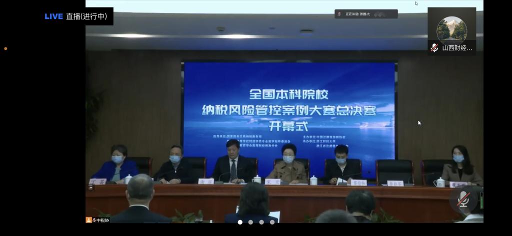 本次比赛得到了山西省税务师协会和山西天扬君合税务师事务所的大力支持,教育部高等学校财政学类专业指导委员会、中国高等教育学会高等财经教育分会相关负责人等参加了线上会议活动。本届大赛的前期分区赛中,共有425所高校的763支代表队2200余名选手报名参加,其中118所高校代表队进入了大赛的全国总决赛。