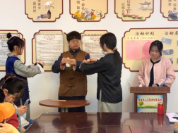 该环节分为成语接龙和健康知识问答两部分。活动中,志愿者说出起始成语,老年人按顺序进行接龙;通过提问有关饮食健康、运动保健等问题,与老年人热烈互动,现场气氛轻松活跃。