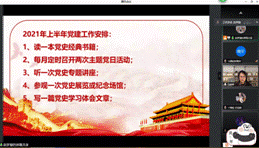 支部书记表示:不论是班子的还是个人的问题,都将以钉钉子的精神,进行再梳理、再归类,制定整改方案,具体到事,具体到人,确保条条得到落实。支部书记还代表支部班子做出了相应的表态:以后要强化理论学习,夯实思想基础,加强与党员的联系,同时开展丰富多样的党建活动。之后进行的民主评议党员议程中,支部成员们严格按照要求,通过线上投票的方式,评选出了10名优秀党员。最后,支部书记统筹安排了上半年的党史学习工作并寄语支部成员。