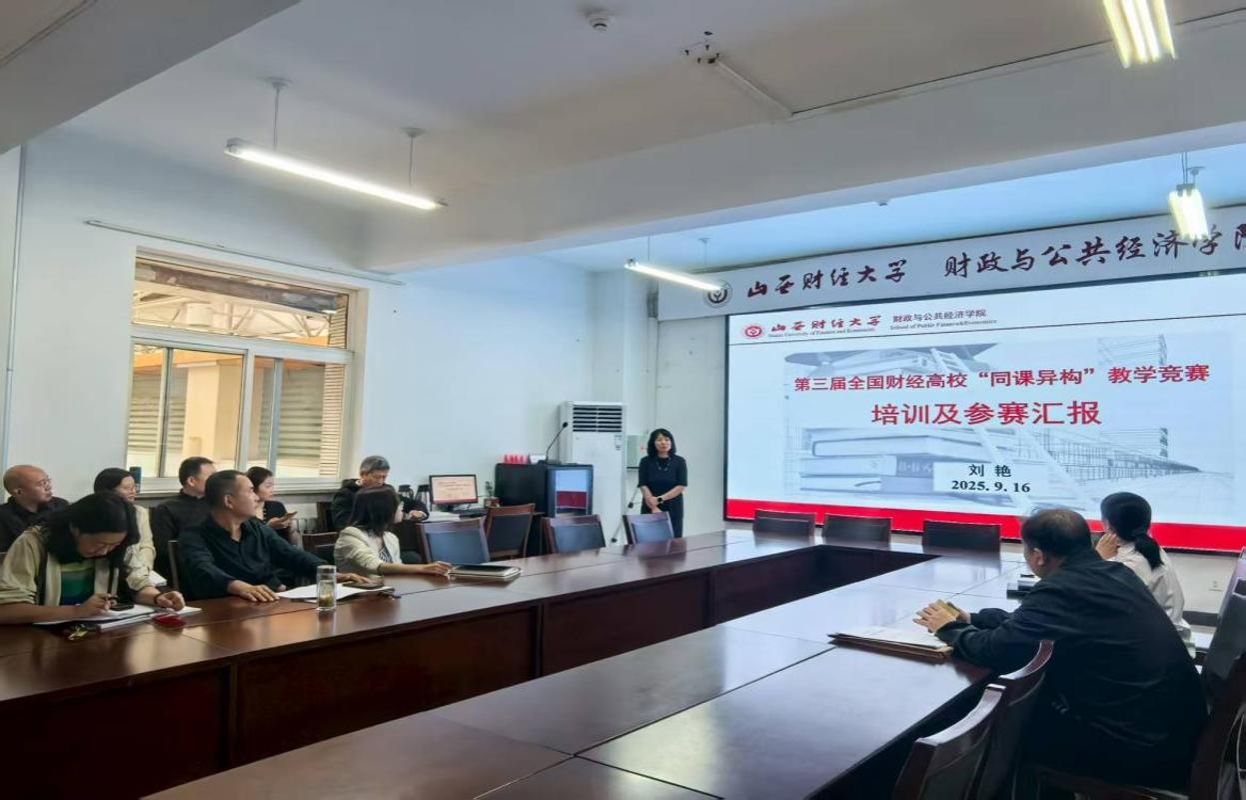讲座主要分为三个部分,第一部分刘老师介绍了第三届全国财经高校“同课异构”教学竞赛赛前培训内容,就6月26日至27日于大连参加的第三届全国财经高校“同课异构”教学竞赛赛前培训研讨会相关感受进行分享,介绍了上海财经大学、东北财经大学、贵州财经大学等兄弟院校的先进教学理念和相关课程建设情况,为后续刘老师参与“同课异构”课程教学竞赛奠定了坚实的基础。第二部分刘老师介绍了“同课异构”课程教学竞赛的相关情况。她通过比较“同课异构”课程教学竞赛与教学创新大赛在参赛规则、评分标准的异同,提升了老师们对两项教学竞赛的认识。刘老师通过参赛,明确未来《财政学》教育教学改革的未来趋势,将兄弟院校《财政学》课程建设经验向在场老师予以分享。第三部分刘老师分享了她参与培训和参加比赛的相关感悟,她主张要注重教学日常积累,将课程思政融入教学和育人,教师们要积极拥抱AI,探索智慧教学,将教学、科研、教研有机结合。